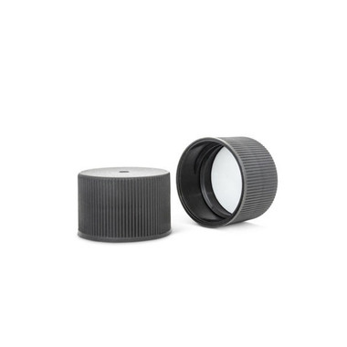 Stock number 2BP0241MR is a 22-410 Black Plastic Cap. It is a polypropylene injection molded closure and it features a matte top and ribbed sides, which make it easy to apply or remove. Inside the top of the cap is a PE foam liner. This liner is a general liner that is compatible with a variety of products and also reduces the transmission of moisture. It is designed to be compatible with a bottle that has a 24-400 neck finish and can be paired with any of the matching bottles found below. We recommend testing this cap with your product to confirm it will work for your process.Â