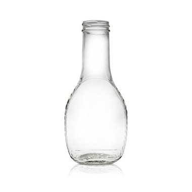 This 8 oz Glass Salad Dressing Bottle has an oval shape. The sides of this bottle have ridges from the base up to the bottom of the neck. This glass bottle features a 38-400 continuous thread finish and is more commonly known as a Banjo Dressing Bottle. The straight neck leads to a wide 38-400 CT cap size opening that is perfect for pouring. It features a large label panel that is the same on the front and back. Use this glass bottle to package dressings, marinades, BBQ sauces and other sauces. Pair it with any of the matching closures found below. Add in a shrink band for a tamper evident seal and also color code your products.