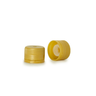 Stock number 2DS0312FT is a 31.5-500 Gold Tamper Evident Cap. It has ribbed sides for easy application or removal and a gold matte finish top. When the cap is removed from the top of the bottle the tamper-evident band at the bottom of the closure will break away leaving a plastic ring on the bottle. This will ensure that the bottle has been either opened or tampered with, giving your customer peace of mind. Inside the top of this cap is a pour spout liner. When the cap is applied to the bottle, the pour spout will insert and stay in the neck. You will need to slightly push down on the cap during application. With the pour spout, this cap is the perfect choice for olive oils, dressings, marinades, and vinaigrettes.Â